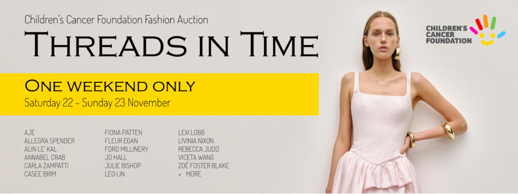 The Children’s Cancer Foundation’s charity fashion auction – Threads in Time – takes place online on Saturday 22nd and Sunday 23rd November.